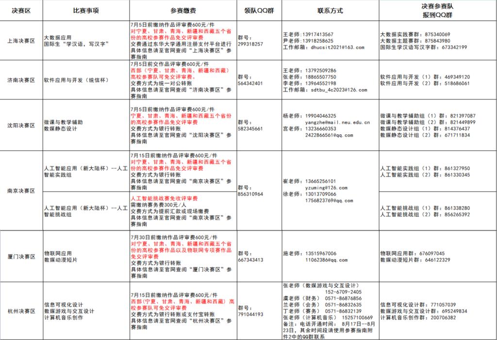 表1 4C2023国赛参赛信息简表(7月3日更新)