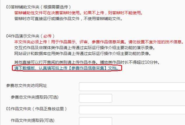 (4)在【04作品演示文件夹(必传)】内完成“参赛作品信息采集”文档的提交!!!