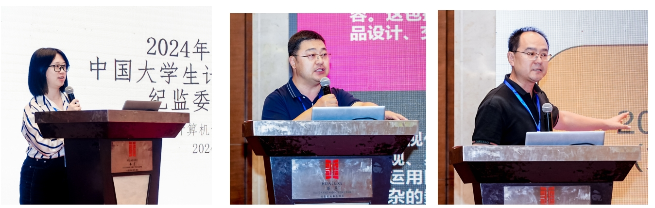 中国大学生计算机设计大赛组织委员会常务副主任、教育部高等学校大学计算机课程教学指导委员会副主任、中国人民大学杜小勇教授,大赛组委会副主任、杭州电子科技大学党委书记吴卿教授,大赛组委会副主任、华东师范大学周傲英教授,大赛组委会常务委员、教育部高等学校动漫与数字媒体教指委秘书长、全国高等院校计算机基础教育研究会会长、中国传媒大学动漫与数字艺术学院党委书记黄心渊教授,大赛组委会常务委员、教育部高等学校大学计算机课程教学指导委员会秘书长、西安交通大学桂小林教授,大赛组委会常务委员、教育部高等学校大学计算机课程教指委委员、西北大学耿国华教授和山东大学郝兴伟教授,江西师范大学学术副校长葛咏教授,大赛组委会秘书长、北京语言大学李吉梅教授,大赛组委会常务委员、武汉理工大学徐东平教授,大赛组委会常务委员、南京大学金莹教授,大赛组委会常务委员、湖南大学赵欢教授,大赛组委会资深专家、教育部高等学校动漫与数字媒体教指委委员、北京林业大学淮永建教授,以及来自北京大学、北京师范大学、东北大学、武汉大学、四川大学、重庆大学、厦门大学等90余高校、出版社和企事业单位的140余名代表,参与了本次会议。